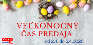 Pozrite sa ako budú naše predajne COOP Jednota Žilina otvorené počas Veľkej noci.